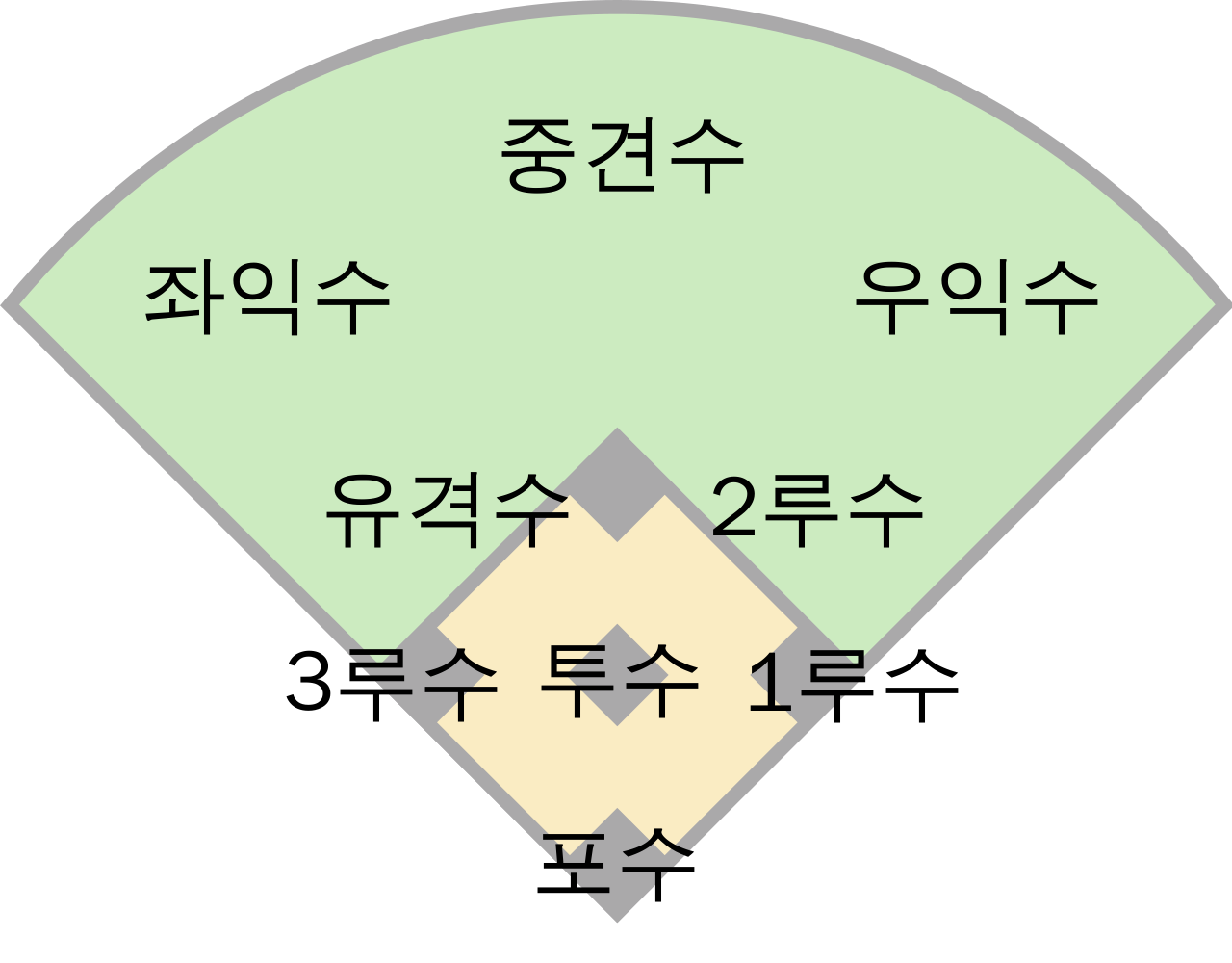 투수와 포수를 '배터리'라고 한다. 나머지 수비수들을 '야수'라고 하는데 내야에 있는 선수는 '내야수', 외야에 있는 선수는 '외야수'라고 한다. 내야수에는 각 루에 있는 1루수, 2루수, 3루수가 있고 2루수와 3루수 사이를 수비하는 유격수가 있다. 2루수와 유격수의 조합을 키스톤 콤비라고 한다. 외야수에는 우익수, 좌익수, 중견수가 있다.